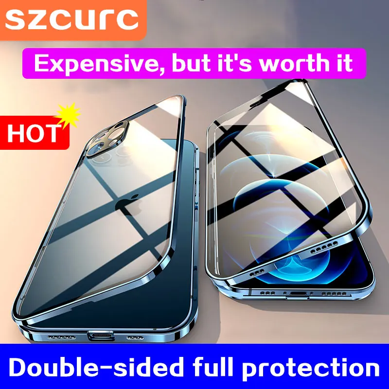 - 새로운 아이폰 13 프로 맥스 전화 케이스, 360 ° 전체 보호 커버. 아이폰 14 11 12 미니 자기 흡착 금속 유리 전화 슬리브