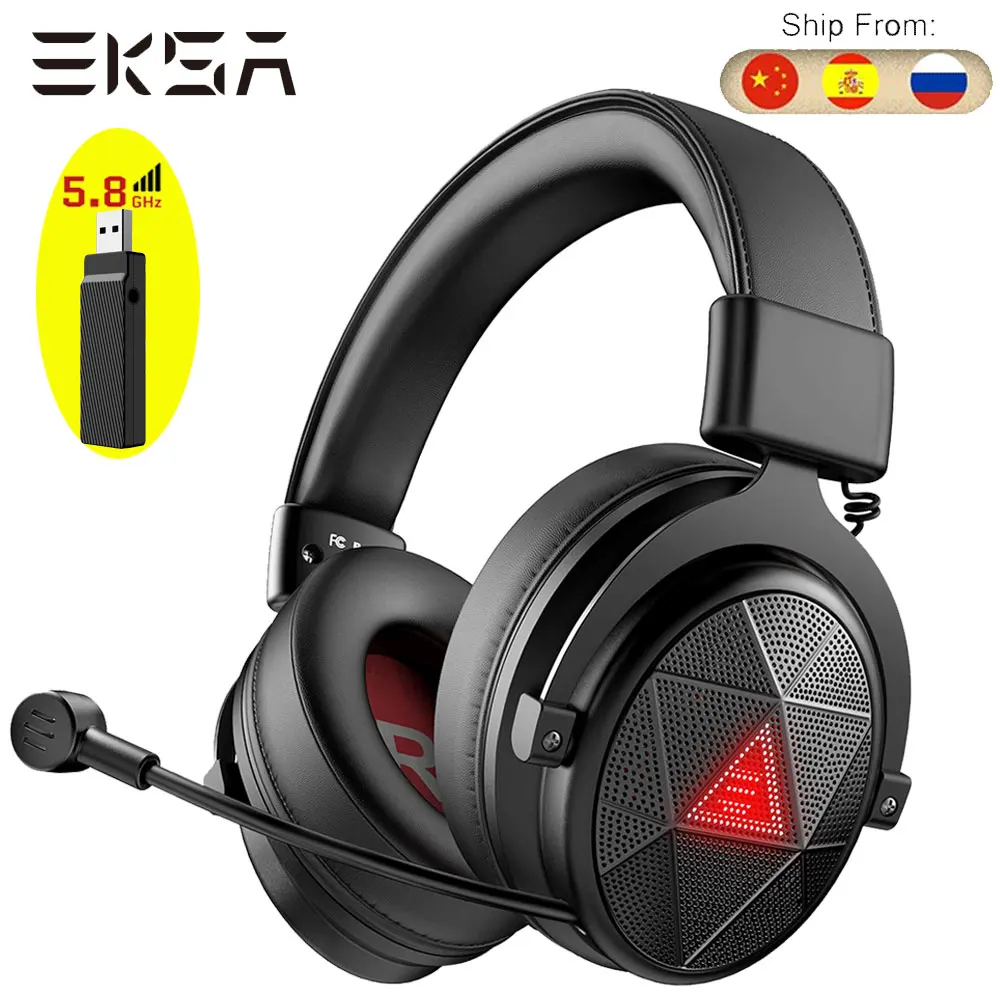 - EKSA E910 ENC 마이크가있는 5.8GHz 게임용 이어폰 Dirver-Free 7.1 서라운드 사운드 헤드셋 게이머 무선 헤드폰 PC / PS4