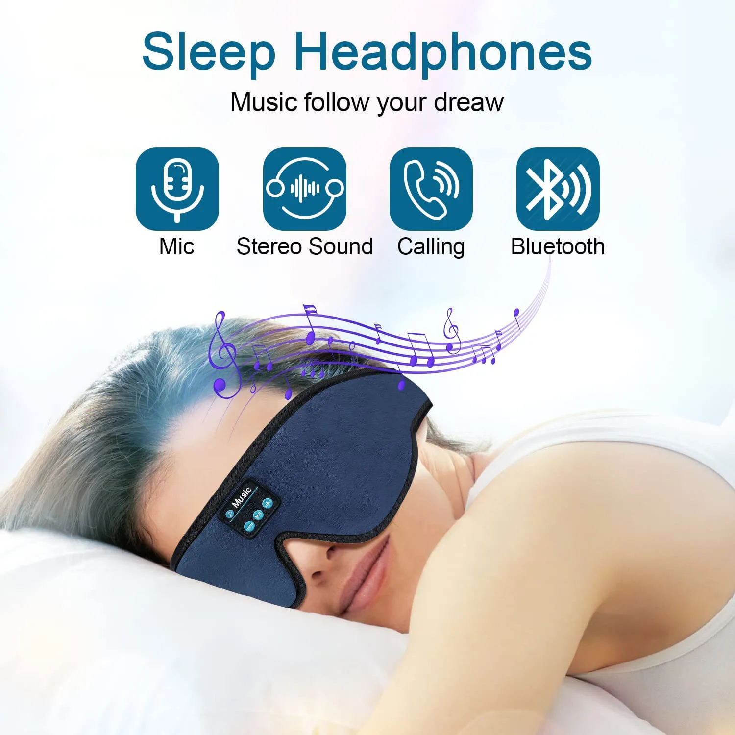 - 수면 헤드폰 3D 블루투스 5.0 헤드밴드, 무선 수면 유물 통기성 음악 아이 마스크 이어 버드 사이드 슬리퍼 선물용