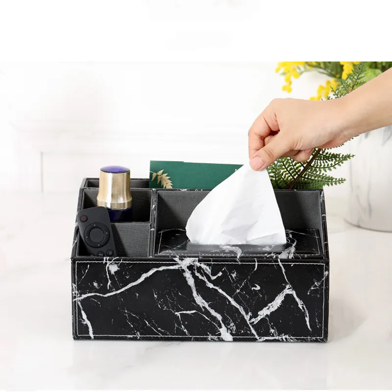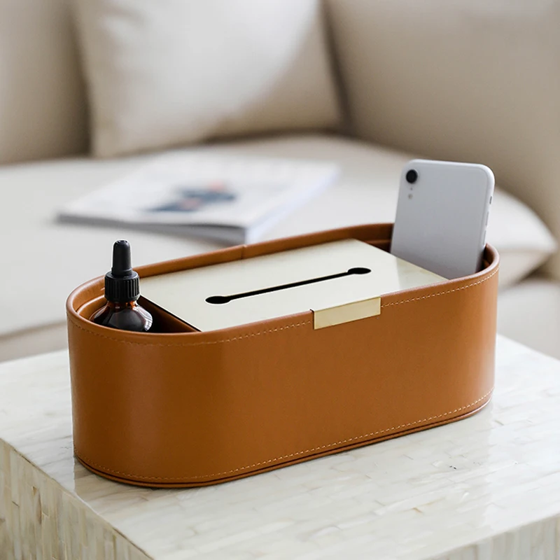 - 패션 품질 가죽 데스크탑 다기능 휴대 전화 원격 제어 스토리지 박스 가정용 조직 펌핑 박스