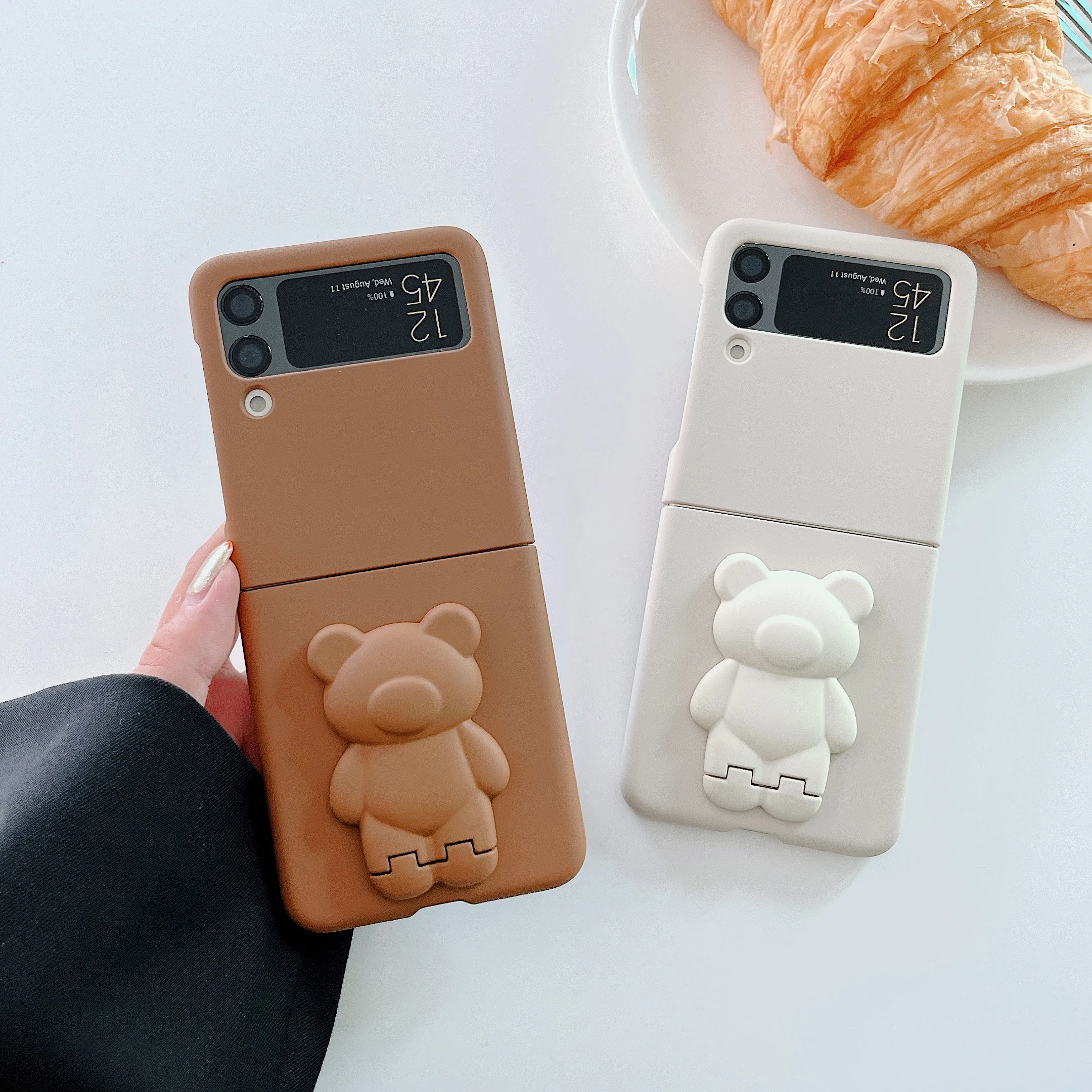- 삼성 Z 플립 3 케이스, 귀여운 곰 홀더 접이식 전화 케이스, 삼성 Z 플립 4 ZFlip3 5G 충격 방지 하드 PC 뒷면 커버