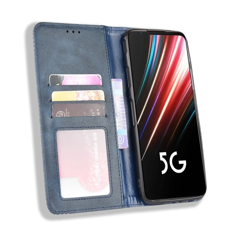 - 럭셔리 레트로 마그네틱 가죽 플립 커버 ZTE Nubia 레드 매직 5G 5s 케이스, 책 지갑 카드 스탠드 소프트 커버 휴대 전화 가방