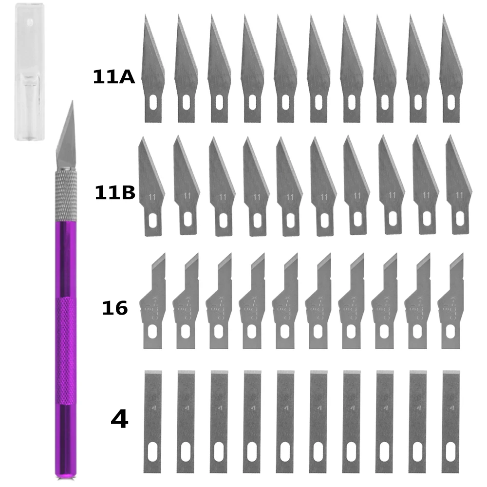 - 비 슬립 금속 메스 나이프 도구 세트 키트 커터 조각 공예 나이프 + 40pcs 블레이드 휴대 전화 PCB DIY 수리 핸드 툴