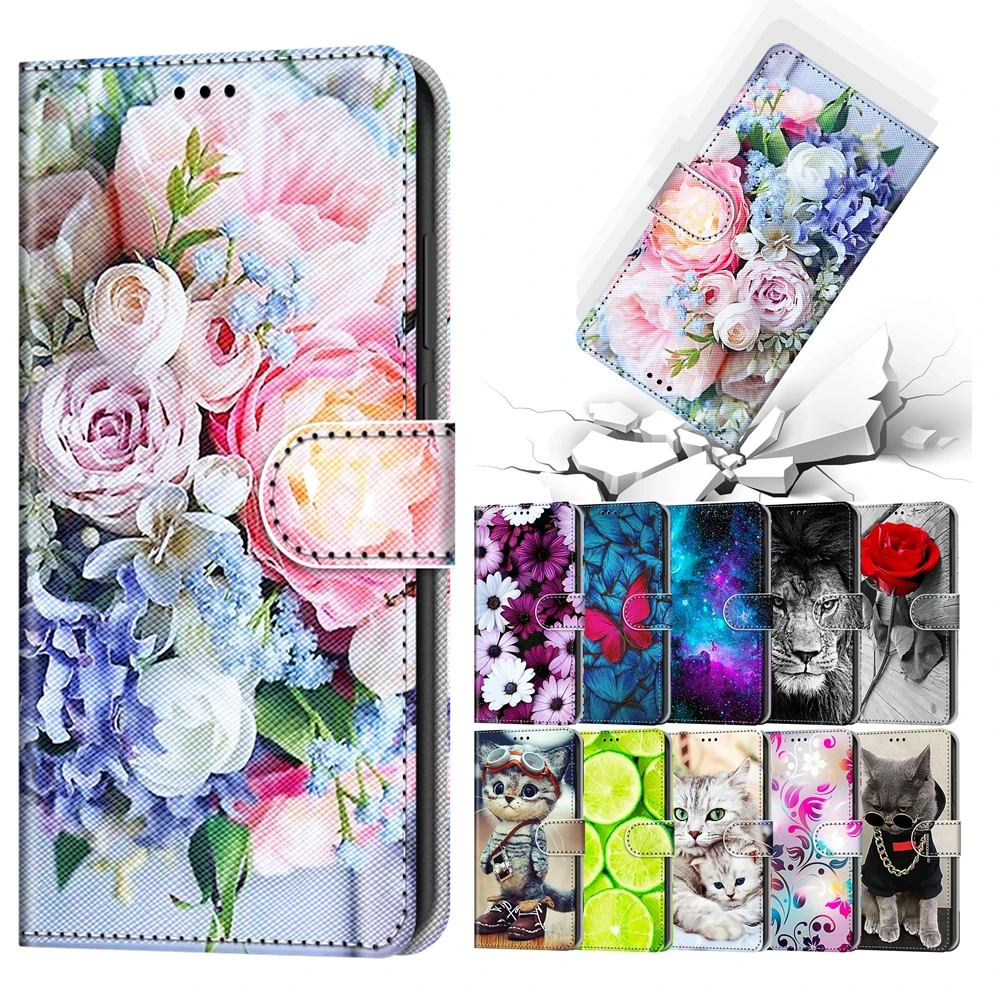 - S21 FE S22 Plus Flip Book Case for Funda Samsung Galaxy S22 Ultra S21 FE 5G Cases Cute Cat Dog Wallet Leather Phone Cover Women