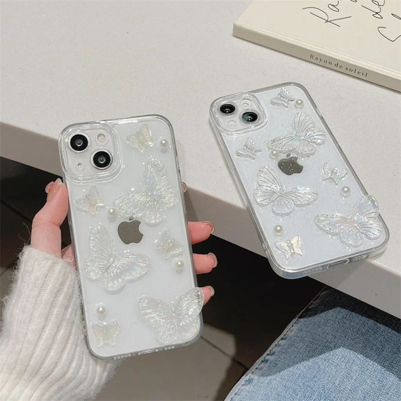 - 아이폰용 패션 멋진 반짝이 나비 소프트 TPU 휴대폰 케이스, 아이폰 13 12 프로 맥스 XR X 11 7 8 플러스 투명 렌즈 보호 후면 커버