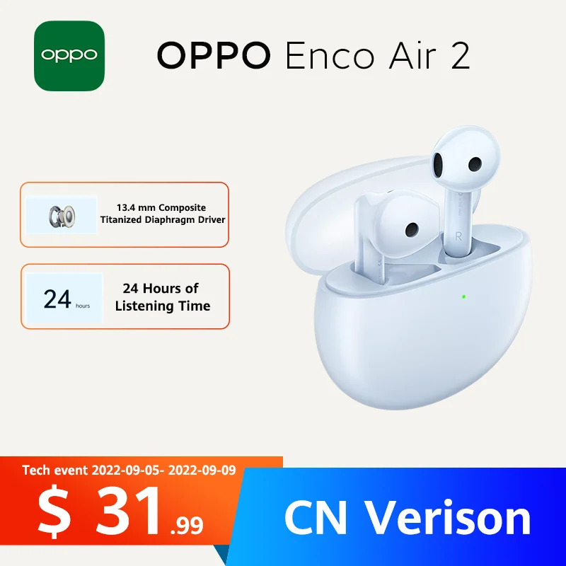 - OPPO ENCO Air 2 TWS 이어버드, 무선 노이즈 캔슬링 블루투스 5.2 헤드폰 AAC/SBC ENCO Air2