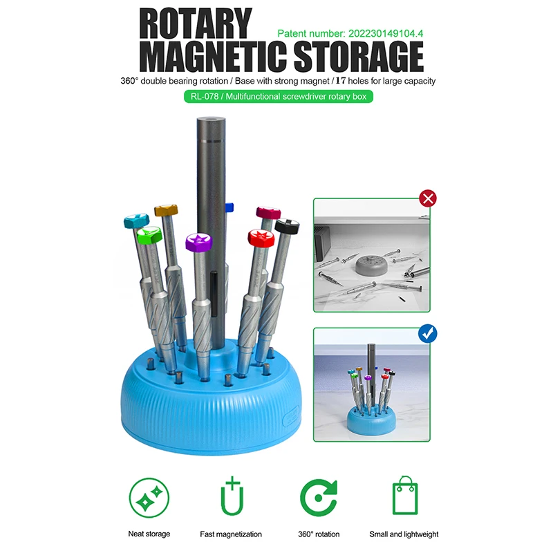 - RELIFE RL-078 Multifunctional 17 Hole Rotary Electric Screwdriver Tweezers Storage Box For Cleaning Desktop Phone Repair Gadgets