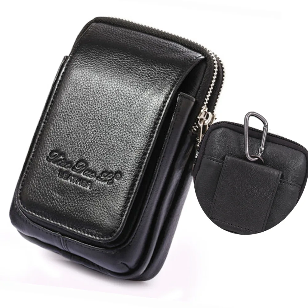 - 고품질 남성 정품 가죽 허리 팩 가방, 동전 담배 지갑 포켓 파우치 벨트 부랑자 셀/휴대폰 케이스 패니 가방