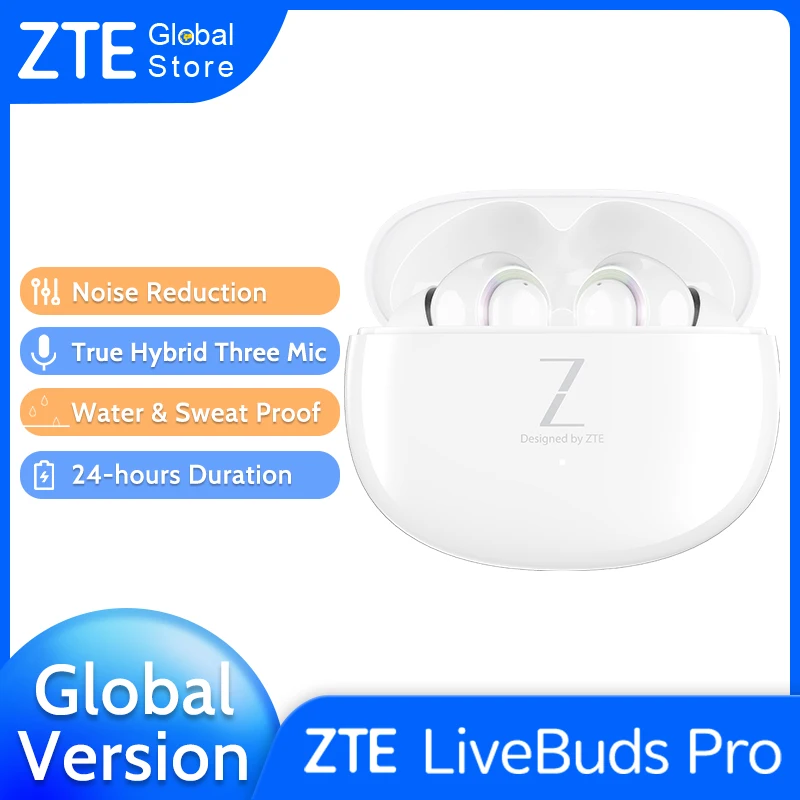 - ZTE-라이브버즈 프로 TWS 무선 이어폰, 글로벌 버전, 3 마이크, 소음 감소, 24 시간 배터리 수명, 65ms, 게임 모드, 스마트 터치 IPX4
