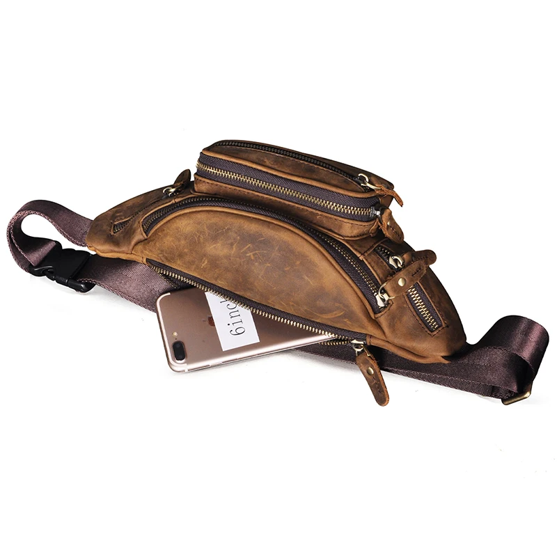 - 최고의 오일 왁스 가죽 여성 레트로 여행 패니 허리 벨트 가방 슬링 가슴 팩 디자인 전화 케이스 담배 파우치 남성용 346