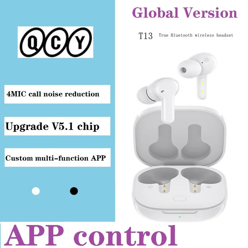 - 글로벌 버전 큐씨와이 T13 블루투스 이어폰 V5.1 무선 TWS 터치 컨트롤 이어폰 4 마이크 ENC HD 통화 사용자 APP