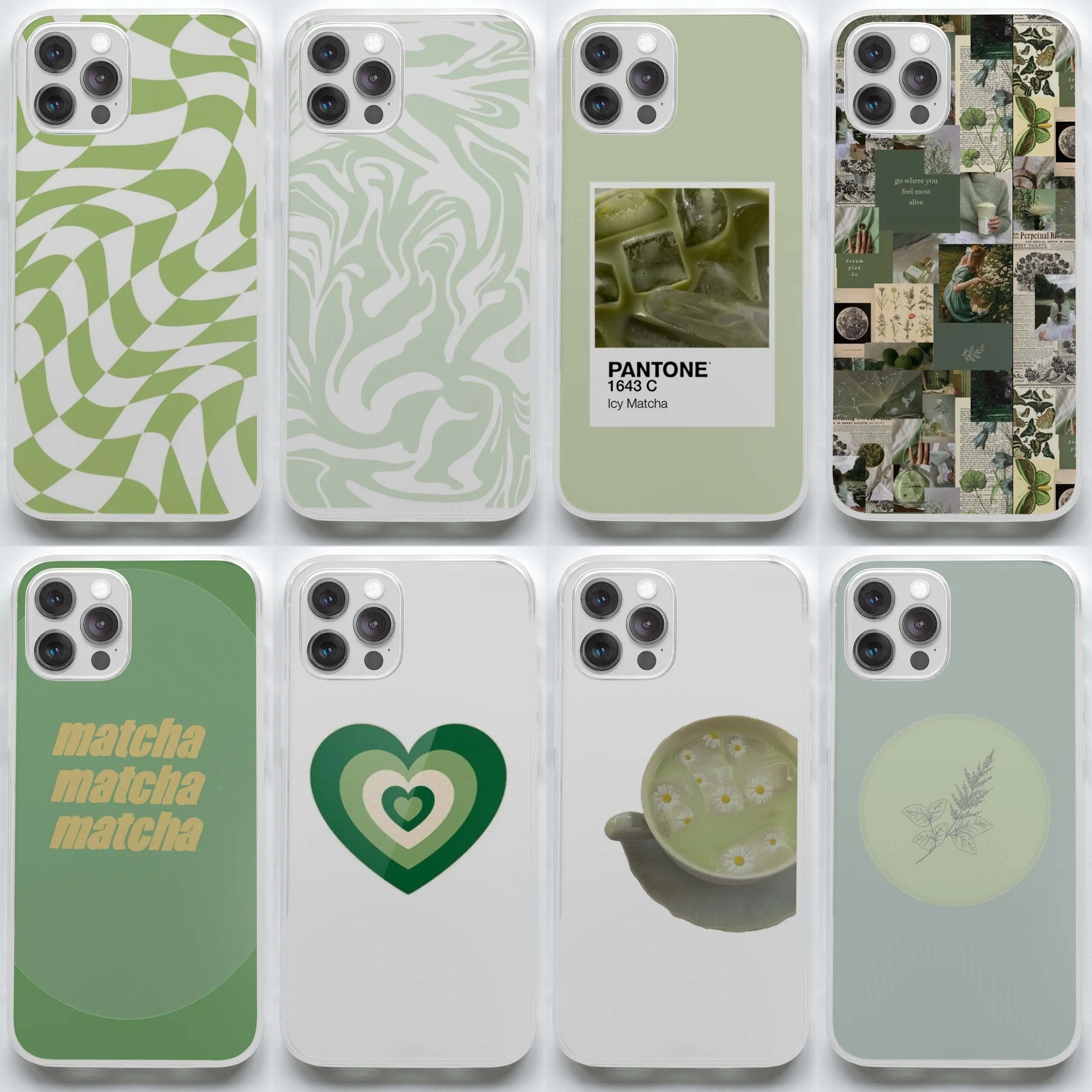 - 말차 세이지 그린 러브 하트 야생화 패턴 소프트 핸드폰 케이스, 아이폰 7 8 플러스 X XS XR 맥스 11 12 13 프로 맥스 미니