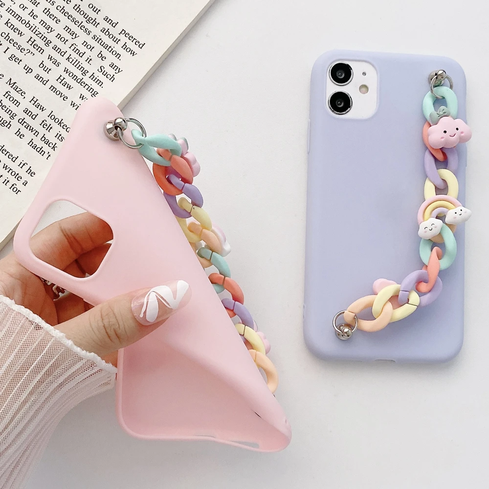 - Kawaii 일본 애니메이션 일러스트 스위트 스타일 멋진 여자 아이폰 11 12 13 Pro Max Xr Xs Max 귀여운 펜던트 거는 체인 케이스