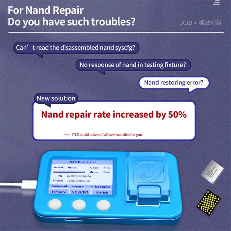 - JCID JC P7S BGA70 수리 장비 NAND 프로그래머 For iPhone 5SE 6G 6p 7G 7P iPad 56 7 iPad Pro 펌웨어 수리 NAND Underlyin